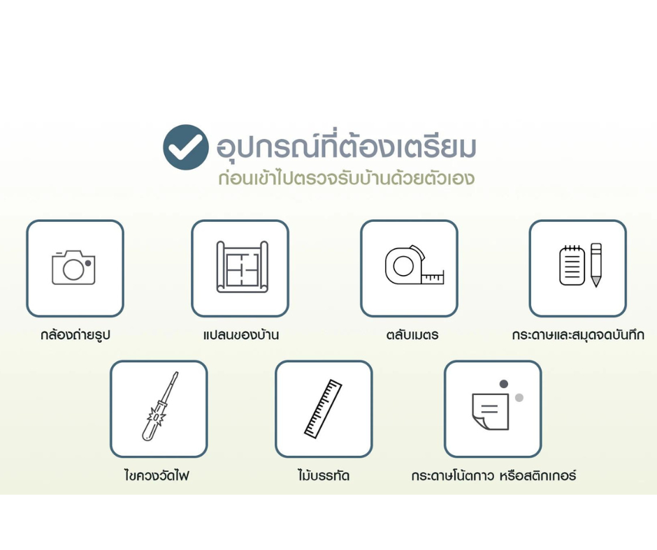 การตรวจรับบ้านก่อนโอนมีความสำคัญเป็นอย่างมากเพราะจะช่วยให้เราได้รับบ้านที่มีคุณภาพมากที่สุด ไม่ต้องไปมีปัญหากับการตามเก็บตามซ่อมในภายหลัง แต่การตรวจรับบ้านก็มีรายการสิ่งที่ต้องเช็คอยู่เป็นจำนวนมาก รวมถึงอุปกรณ์ที่จำเป็นต้องใช้ Checklist ทั้งหมดในบทความนี้จะช่วยให้คุณสามารถตรวจสอบบ้านได้เองในระดับหนึ่งและมั่นใจได้ว่าจะได้รับบ้านที่สมบูรณ์ตามที่จ่ายเงินไป